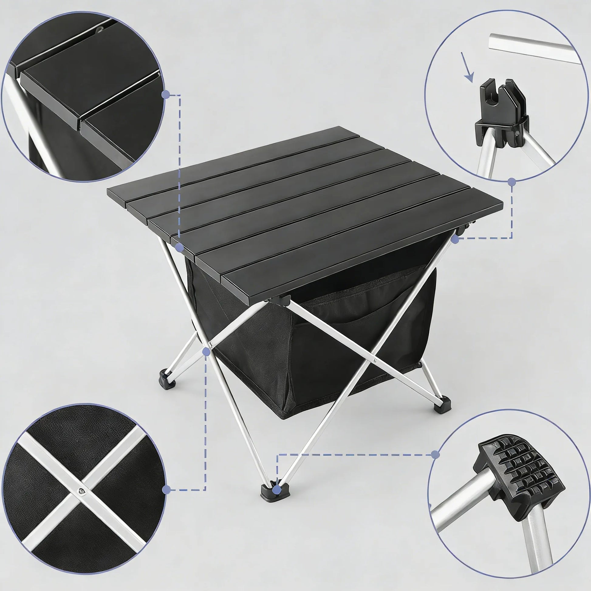 Made from heavy-duty aluminum with stable foot caps that prevent leg folding, bending, or collapsing, this folding camping table stays steady on various terrains. Its triangular frame and reinforced joints support up to 55 lbs, making it reliable for picnics or outdoor cooking.