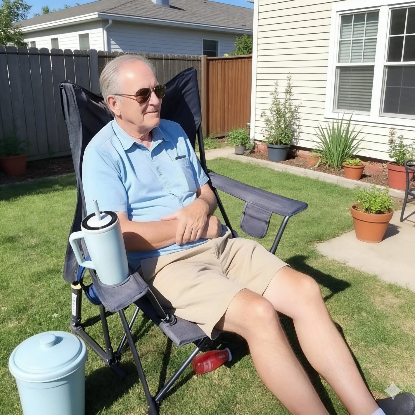 Experience a gentle sway with our exclusive spring absorbers. Supported by a robust 350-lb steel frame, cooling mesh, and a built-in cup holder for all-day leisure.