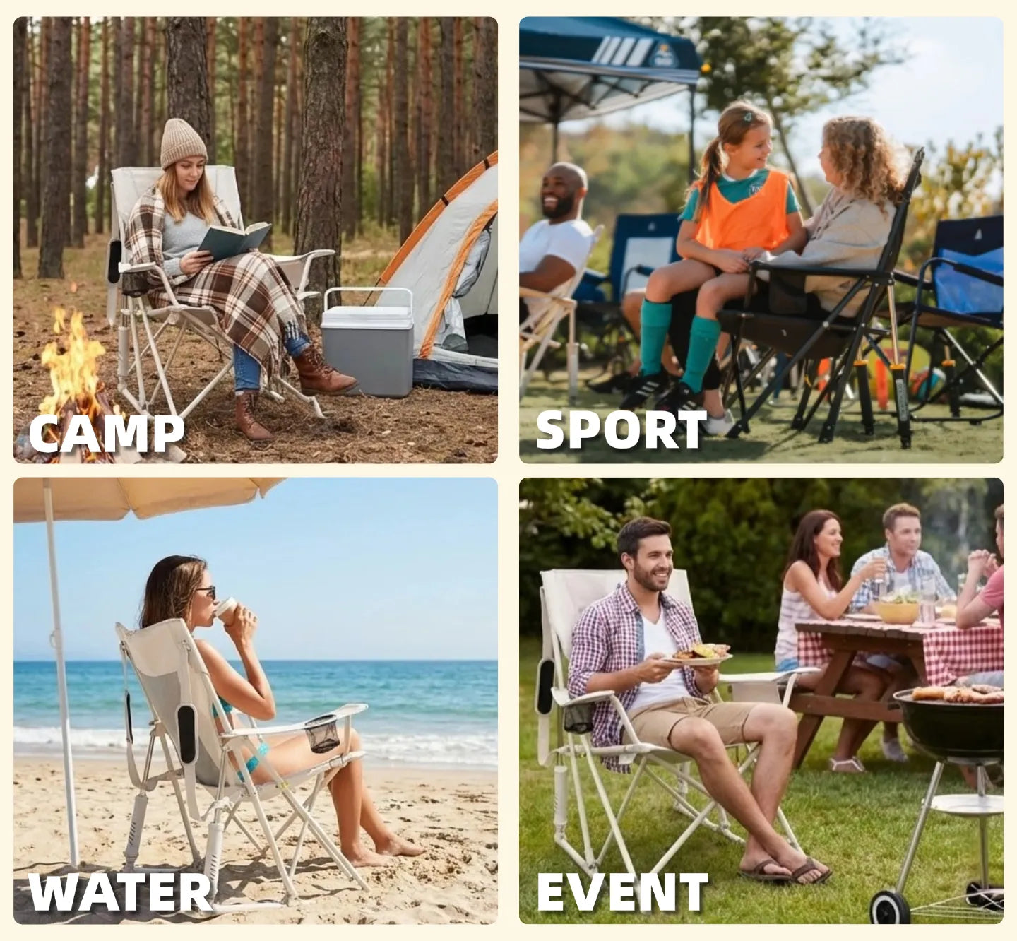 No assembly required. Simply push back to lock in comfort instantly. Collapses just as fast, featuring a built-in carry strap for true grab-and-go portability.